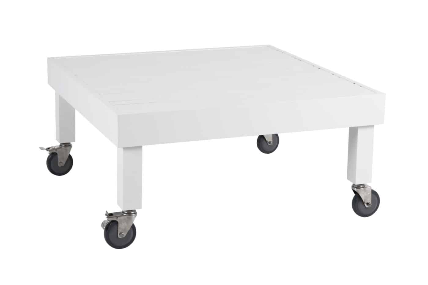 Brafab Ambon soffbord vit 89×89 cm är ett soffbord på hjul, i vitlackerad underhållsfri aluminium, vilket gör bordet lätt att flytta efter behov. Soffbordet är framtaget med en ny unik teknik som ger ett dämpande ljud på bordsskivan