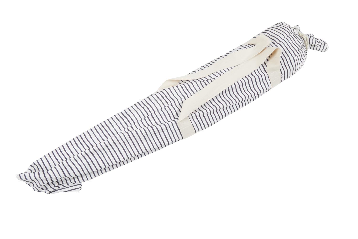 Parasollet kan man vika ihop och förvara i medföljande bag med handtag.