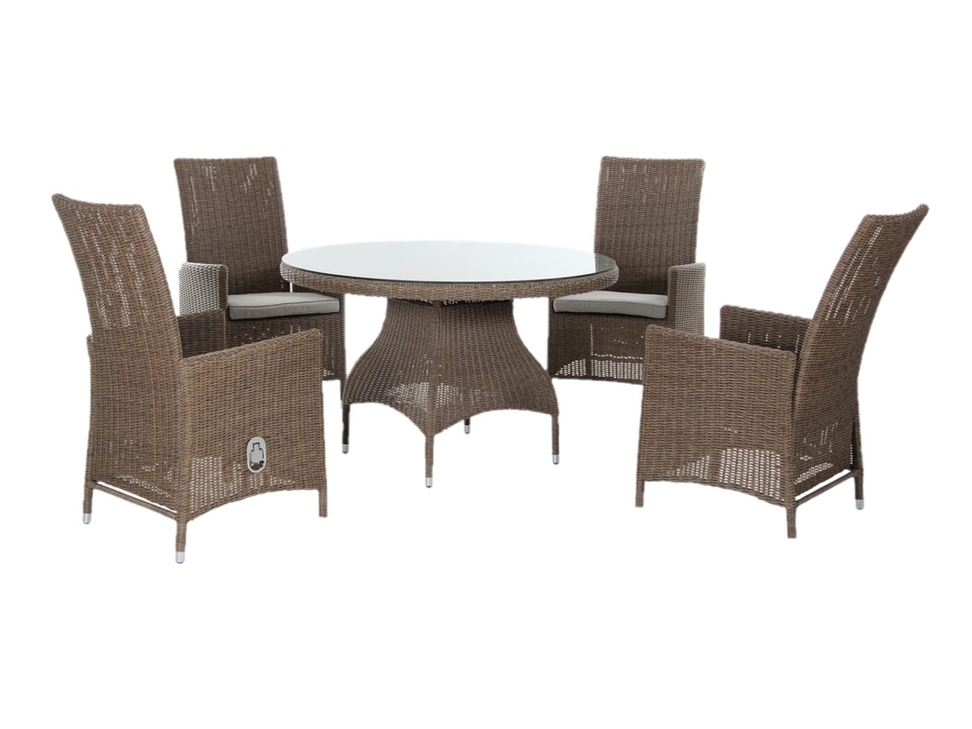 Brafab Ninja Matgrupp är en modern matgrupp i vacker rustik konstrotting. I vårt set ingår matbord Ø120 cm med glasskiva och 4 positionsstolar. Det ingår inte sittdynor till positionsstolarna men Ninja sittdyna 49×49 cm eller Ninja positionsstolsdyna finns att köpa till. Ninja-kollektionen är modern, tidlös och bekväm serie detta för att erbjuda er en mysig loungekänsla utomhus. Här samlar ni gärna familj och vänner för trevliga middagar och andra festligheter. Med matbordet och de bekväma stolarna sitter ni garanterat skönt tillbakalutade över en god middag. Efter middagen flyttar ni över till en soffgrupp och slappna av i sommarvärmen och dra in doften av nyklippt gräs. I serien finns även sköna sittdynor samt dynor till karmstolar och positionsstolar.