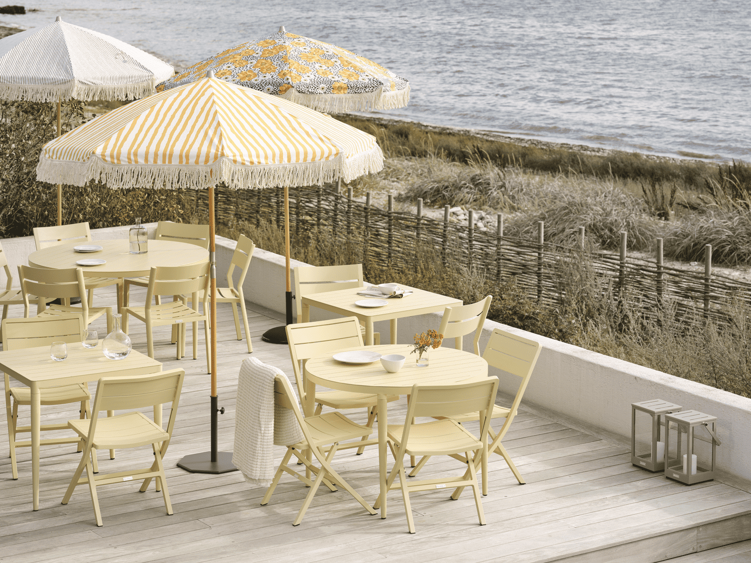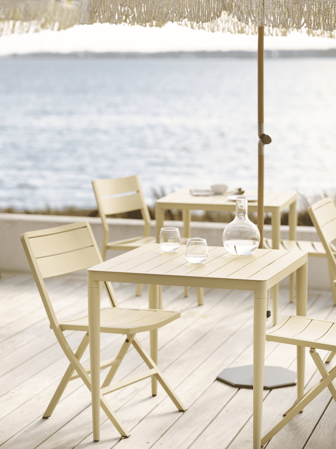 Borden finns i tre storlekar Ø72 cm, 72×72 cm för två stolar och 120×72 cm för fyra stolar.