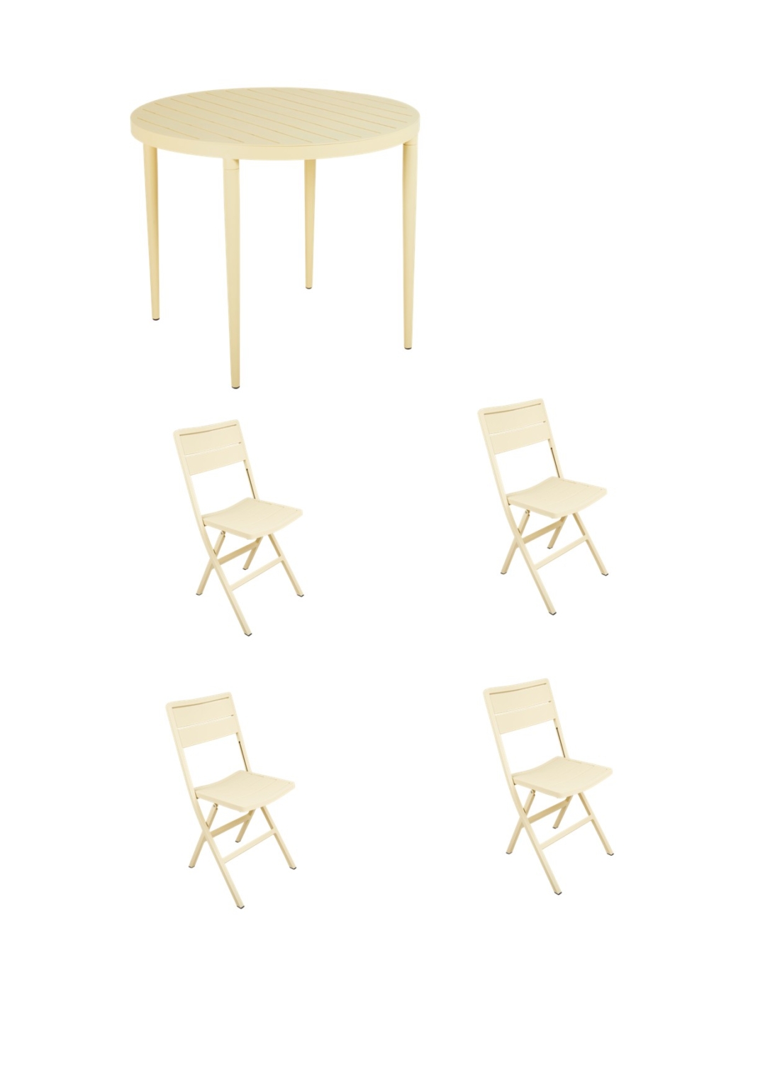 Brafab Wilkie Cafégrupp olika färger är en serie i aluminium med moderna, fällbara stolar och bord i härliga färger.