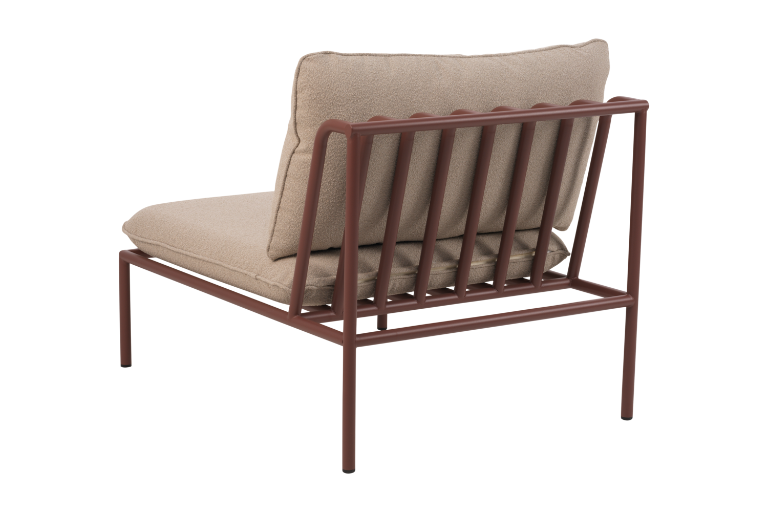Uppkallad efter sina kragliknande former – en modulär loungeserie definierad av mjukt Teddy tyg och elegant böjda aluminiumrör. Flexibel och byggbar – varje del fästs enkelt med diskreta kopplingar och halkfria dynor. Finns i flera färger på både stomme och tyg.