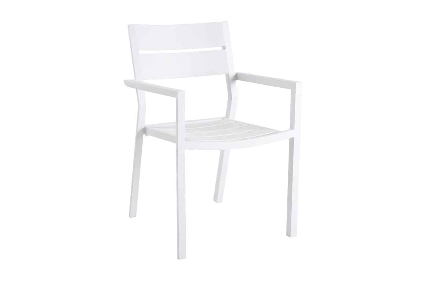 Brafab Delia Karmstol vit Aluminium är en stapelbar matstol i vit aluminium. Passar utmärkt ihop med Nimes matbord som finns i olika storlekar. Finns även passande sittdynor att köpa till för högre komfort.
