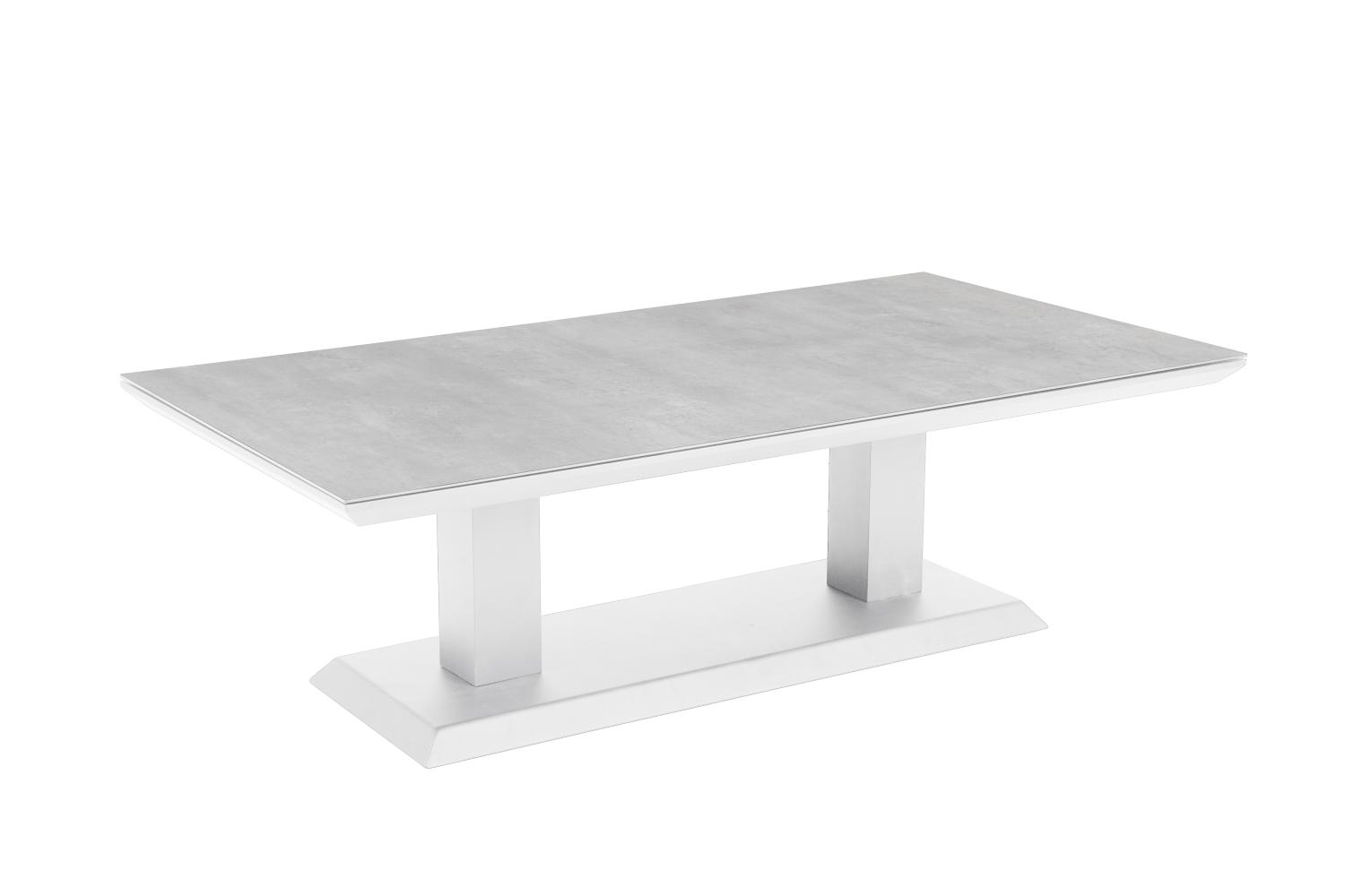 Brafab Heis Soffbord vit 150×79 är ett elegant höj- och sänkbart loungebord i vit aluminium och glasskiva.