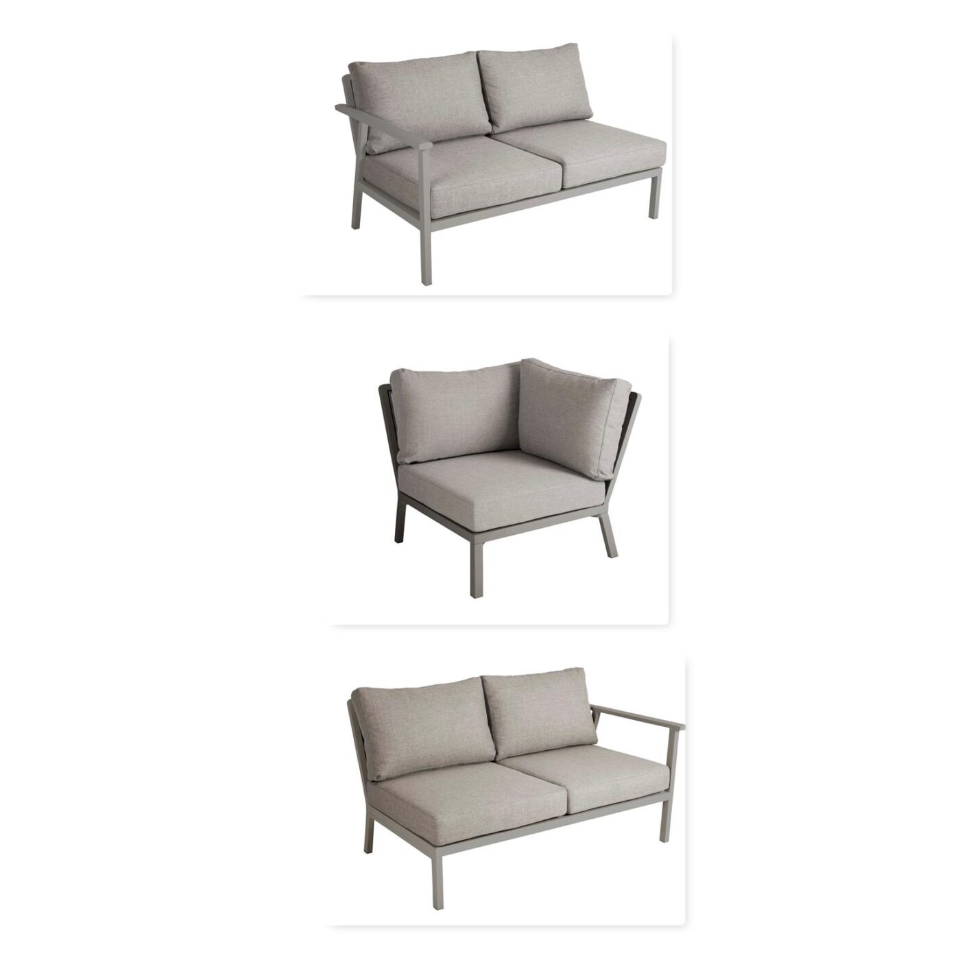 Detta är en ny version från 2022 av Samvaro kollektionen. De nya delarna är lite längre, djupare och har lägre höjd. Dessutom sitter man lite lägre, vilket ger ytterligare “loungekänsla”. Borden har nytt utseende, är lite smalare och lite lägre. De nya delarna finns i beige/khakifärgad aluminium med sandfärgade dynor samt antracitgrå aluminium med pärlgrå dynor.