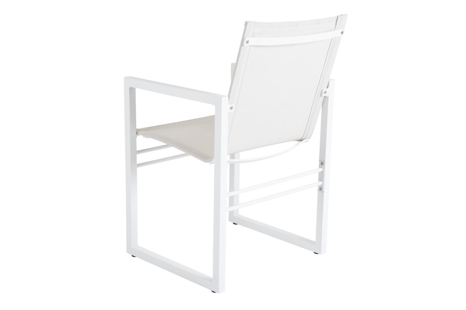 Vevi matstol Vit/Offwhite Det nordiska formspråket och den eleganta, moderna designen kännetecknar denna serie. Från det generösa matbordet med plats för familj och vänner till bekväma stolar, sidobord, loungefåtöljer och mycket mer som gör din uteplats till den perfekta platsen för avkoppling och umgänge. Många av de olika enheterna finns både i aluminium kombinerat med textilen och teak kombinerat med rostfritt stål. Design Dick Björk.
