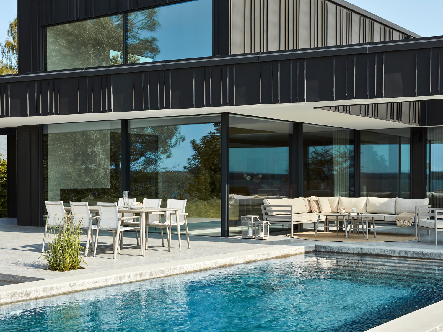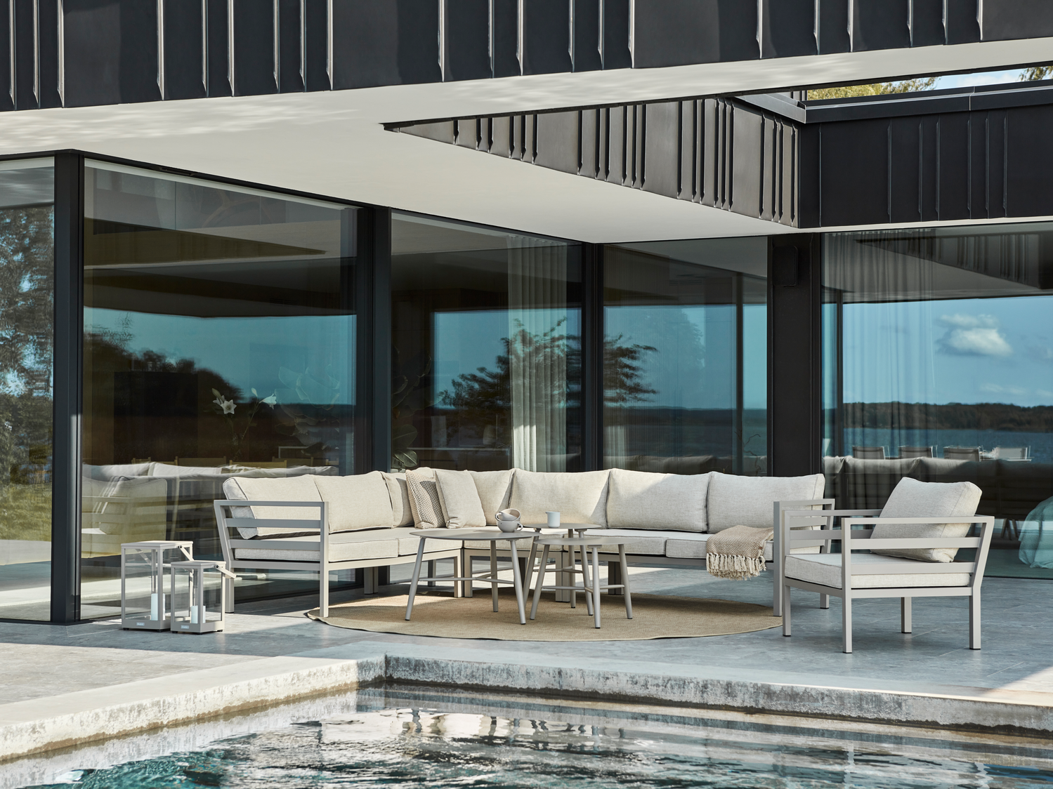 - Aluminium är i grunden ett underhållsfritt material. Men vi rekommendera att torka av regelbundet med en fuktad trasa. Använd ett milt rengöringsmedel vid behov.